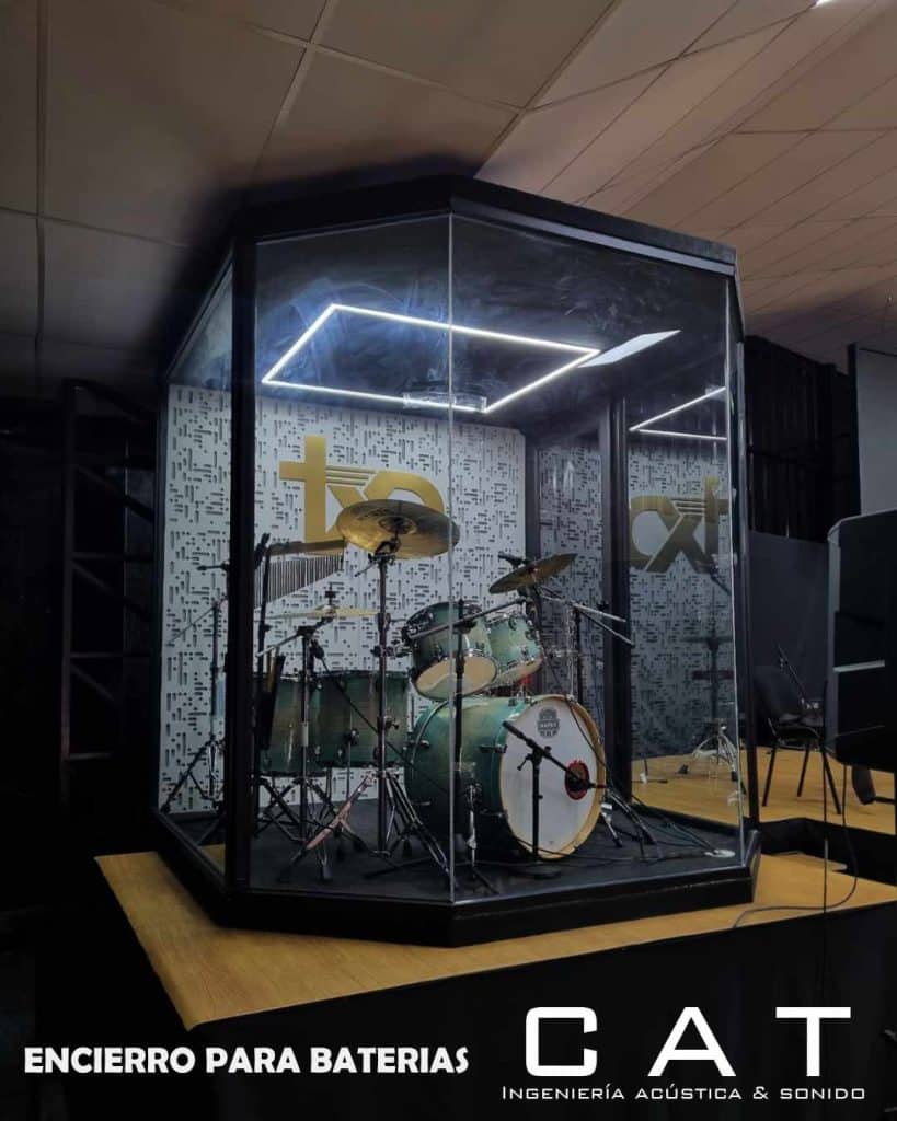 En CAT Ingeniería Acústica diseñamos e instalamos cabinas acústicas profesionales para baterías con aislamiento y control acústico garantizado.