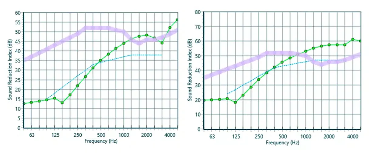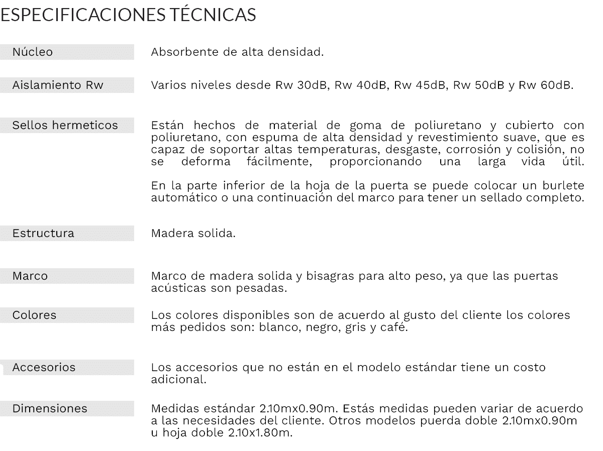 Nivel de aislamiento de nuestras puertas de Rw 30dB y 40dB.