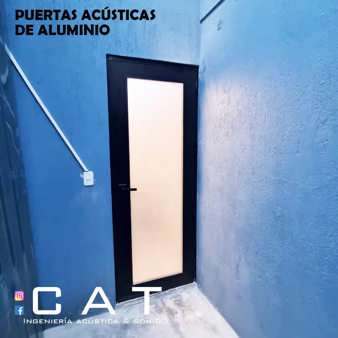 Puerta acústica con vidrio doble y marco perimetral de aluminio, sellada herméticamente; así que mejora el confort acústico de tu oficina manteniendo la elegancia de un sistema de aluminio o PVC.