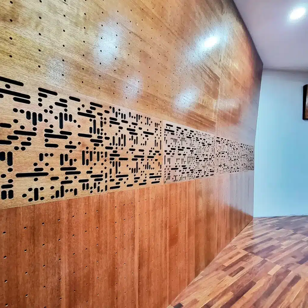 Este sistema utiliza estructuras metálicas o de madera, con paneles decorativos de alta densidad y materiales absorbentes en su interior, ofreciendo una apariencia cálida, moderna y totalmente personalizable.